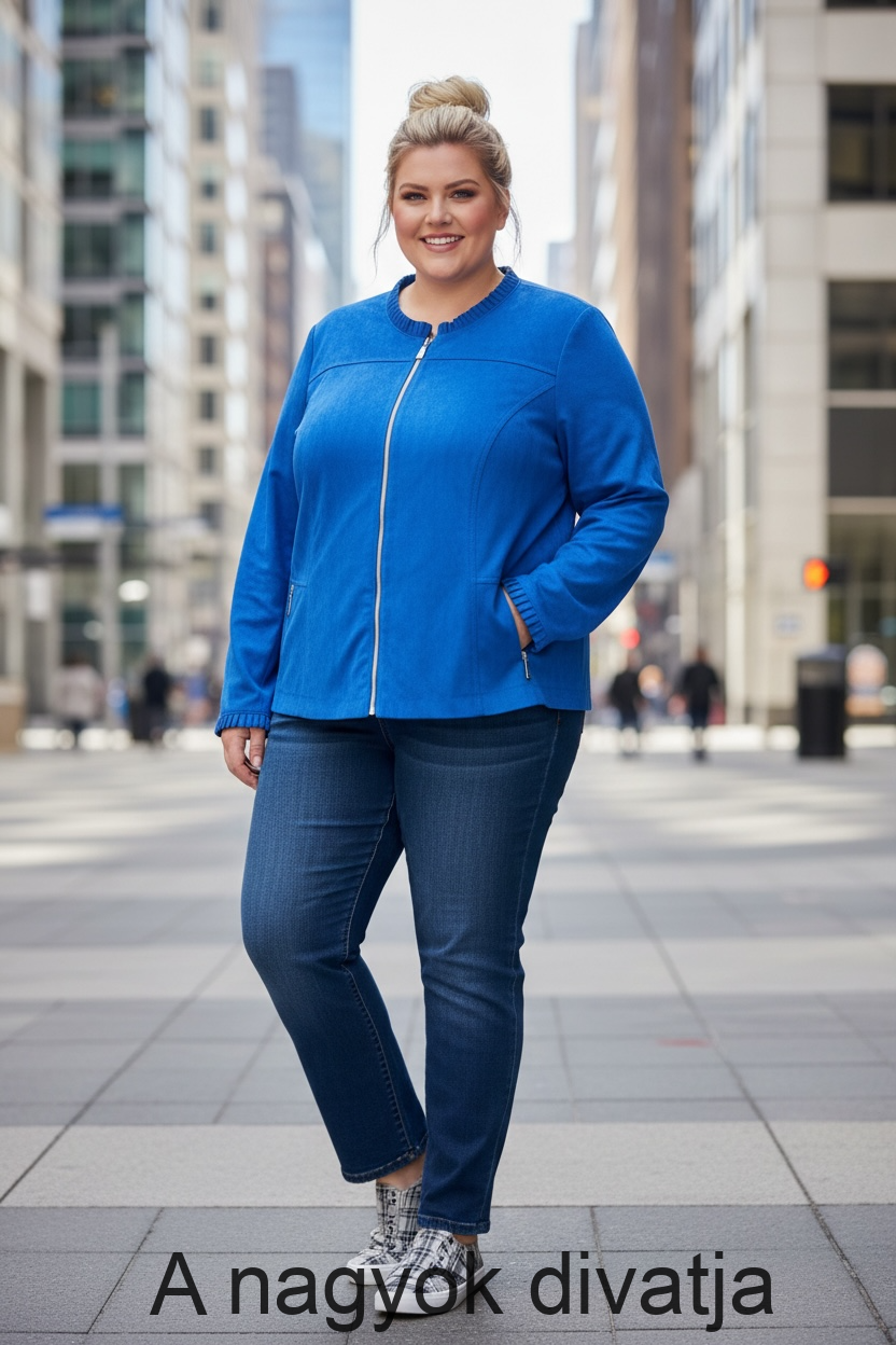 Búzakék, művelúr, zsebes, húzózáras, fodros ujjakkal, elegáns, galléros blézer.