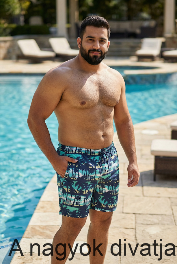 Pálmafa mintás, belsejében plussz hálós belső short, úszónadrág.