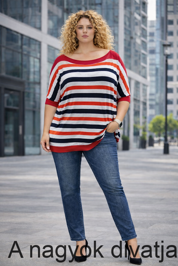 Trendi, kimondottan bőszabású, nem testhezálló, csíkos pamut felső.