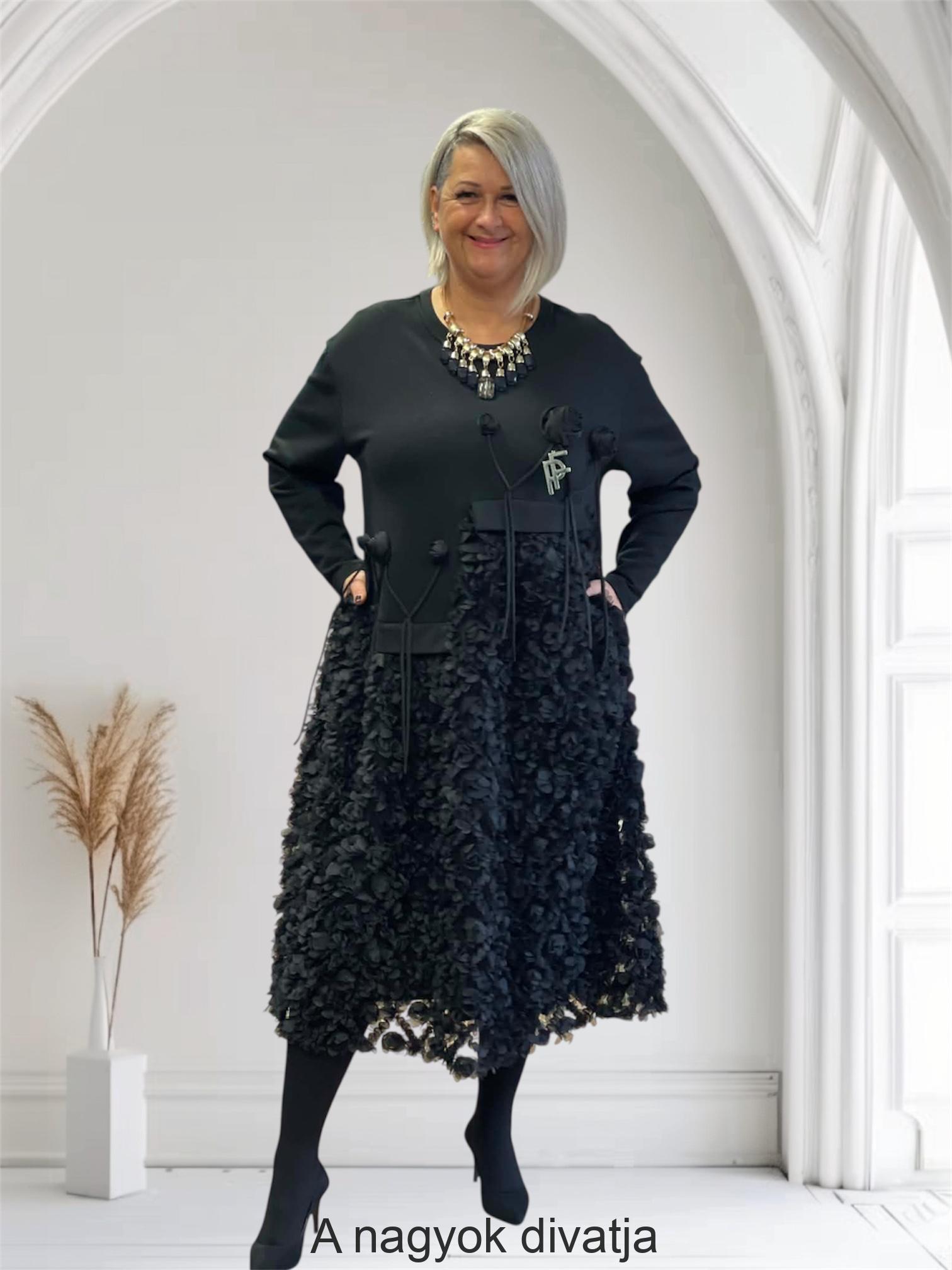 Elegáns fekete PAPARAZZI ruha ,egyedi 3D virágdíszítéssel, amely tökéletes választás különleges alkalmakra.