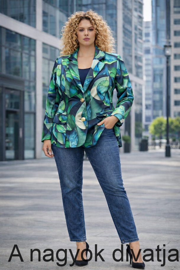 Elegáns , modern szabású, különleges mintázatú blézer, amely stílusos megjelenést biztosít.